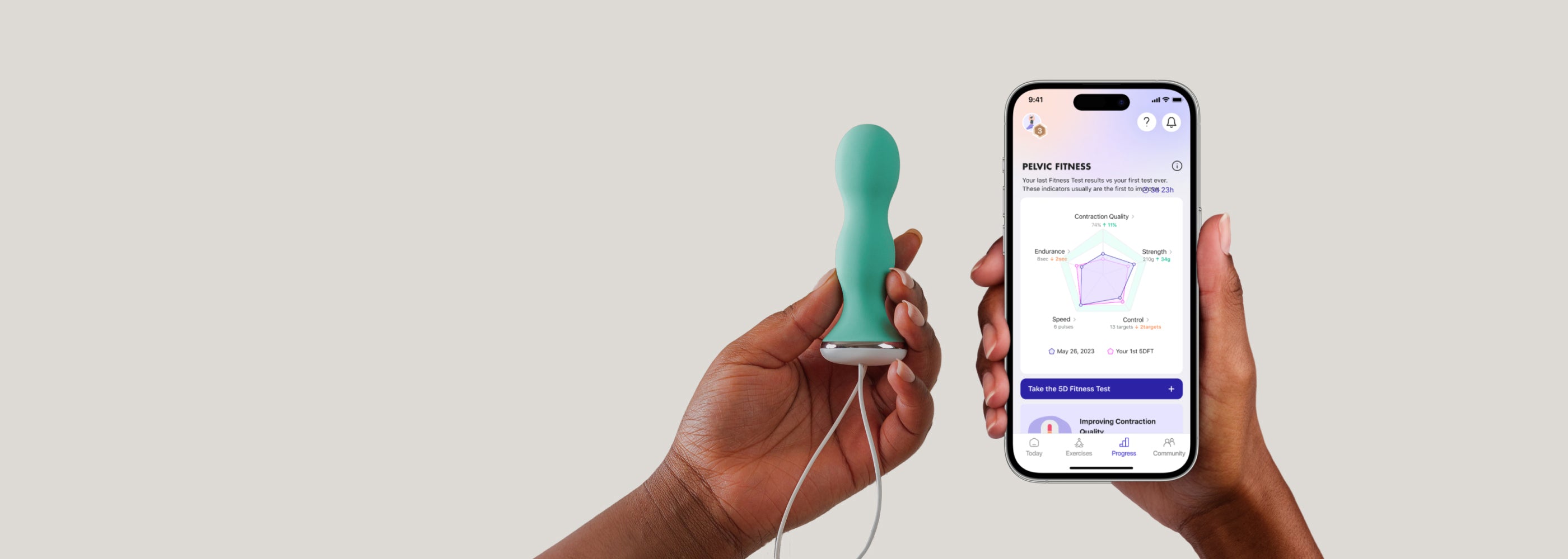 Realizzata su misura per migliorare l'allenamento dei muscoli del pavimento pelvico, la nostra applicazione offre programmi personalizzati e tiene traccia dei tuoi progressi, rendendo il tuo successo più raggiungibile che mai.
